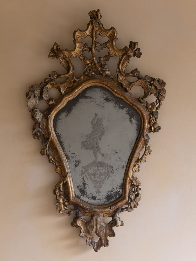 Having engraved mirror plates depicting mythical characters. Perfectly time-softened gilding.
